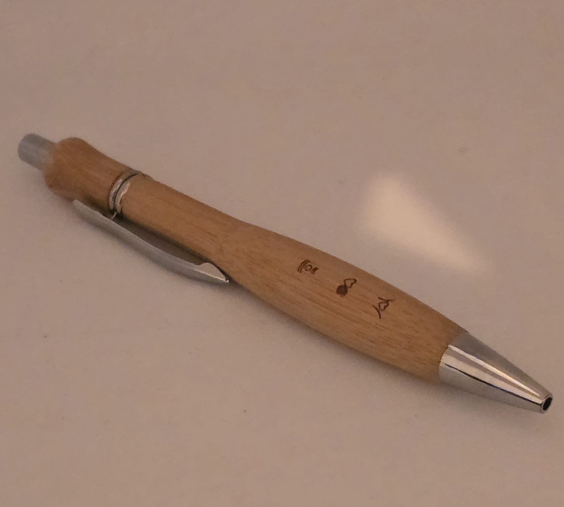 - Un crayon en bambou gravĂ© de trois symboles dâarbrien, langage créé par la romanciĂšre pour la saga Coeur Nature, la lĂ©gende de lâarc-en-ciel